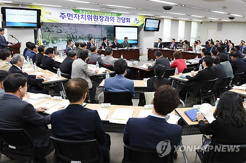 | △ "화성시 농산물, 수원시가 앞장서 판매" (수원=연합뉴스) 염태영 수원시장은 17일 오후 시청 회의실에서 열린 화성지역 농업인 직거래장터 활성화를 위한 간담회에서 화성지역 농산물 판매지원을 약속했다. 2015.4.17 <<수원시 제공>> kcg33169@yna.co.kr |