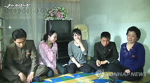| △ 재입북 호소하는 탈북자 가족들 (서울=연합뉴스) 북한의 대남선전매체 우리민족끼리TV는 7일 '남조선에 있는 리용철에게 보내는 아들 리석의 편지'라는 제목의 20여분의 영상을 공개했다. 영상에는 탈북자 '리용철'의 가족이 등장해 재입북을 호소하고 차별 없이 지내고 있다는 점을 강조한다. 북한이 '가족의 눈물 영상'을 통해 탈북자에게 재입북을 권유하는 것은 이례적이다. 사진은 영상에 등장한 가족들로 왼쪽부터 조카 박광일(38살), 둘째 딸 리미경(19살), 맏딸 리미향(22살), 아들 리석(16살), 아내 심성실(46살). <<우리민족끼리TV 화면 캡쳐>> 2015.5.7 nkphoto@yna.co.kr |