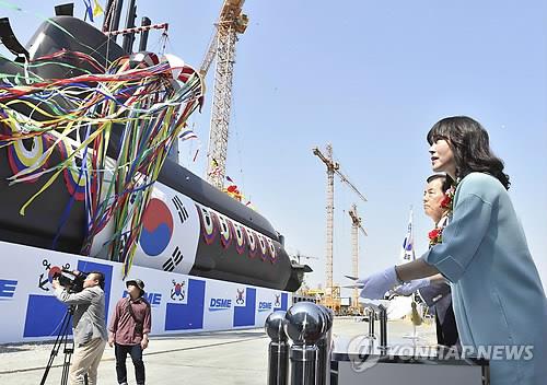 거제 대우조선해양서 진수식…여성 이름 딴 첫 잠수함