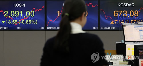 이날 코스피는 대내외 악재 속에 전 거래일보다 13.58포인트(0.65%) 하락한 2,091.00으로 장을 마쳤다.