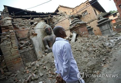 | △ 7일(현지시간) 네팔 박타푸르에서 지진으로 가족을 잃은 한 남성이 사원을 방문하고 있다.(EPA=연합뉴스) |