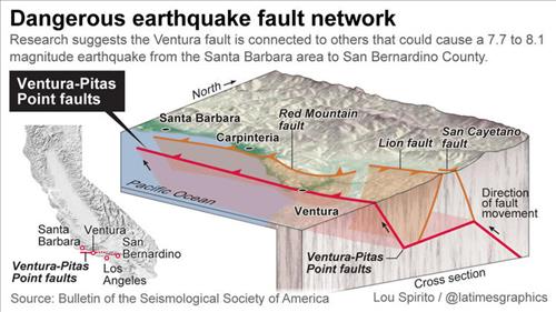 보고서는 가장 큰 지진 우려 지역으로 캘리포니아 주로 꼽았다. 캘리포니아 주의 샌안드레아 단층은 규모가 가장 큰데다 활발한 작용으로 대지진으로 연결될 가능성이 크다고 보고서는 분석했다.