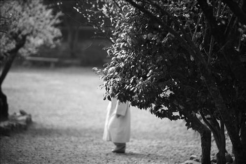 작가는 선암사에 매화가 한창이던 봄날, 동백나무에 가려 하반신만 드러난 스님의 모습을 보고 수행자가 꽃에 가려 실체가 없어지고 고혹한 향기만 남은 듯 비현실적인 느낌을 받아 직관적으로 셔터를 눌렀다. 수행자의 정신이 현실세상과 만나는 순간이 한 컷의 사진으로 남았다.