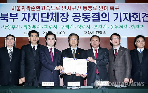 | △ 경기북부 단체장 서울외곽도로 요금 인하 촉구(연합뉴스 자료사진) |