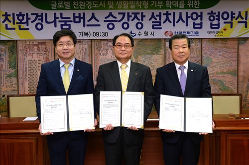 한전기술[052690]은 수원과 용인 지역의 노후한 버스 승강장을 친환경·나눔 개념을 더한 새로운 버스승강장으로 교체하기 위해 7일 수원시, 8일 용인시와 공동협약을 맺었다고 밝혔다.