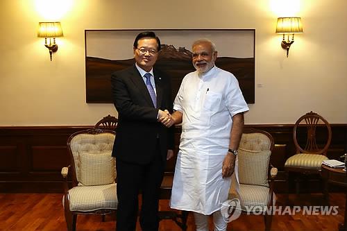 그는 또 "인도는 해변이 2천500㎞로 조선업 발전 여지가 크다"며 "조선 산업에 상당한 기술력을 보유한 한국이 인도 조선업에 투자해주기 바란다"고 말했다.