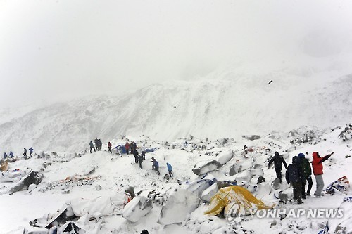 지난달 25일 발생한 지진으로 인한 눈사태가 베이스캠프를 덮쳐 외국인을 비롯해 에베레스트 등반을 준비하던 19명이 목숨을 잃었다.