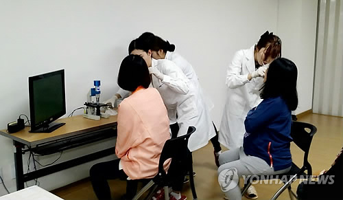 | △ 전국 4년제 대학에서 사회봉사 교과목이 10% 넘게 늘어난 것으로 나타났다. 사진은 치위생과 학생들이 구강건강관리를 위한 사회봉사 활동을 하는 모습. |