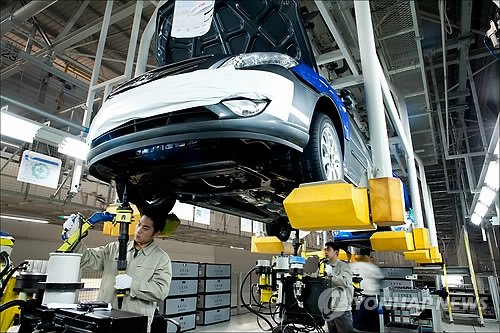 | △ 현대차 중국 법인인 베이징현대 생산라인(연합뉴스 자료사진) |