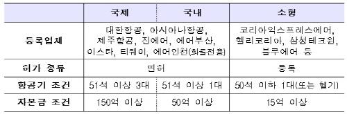 코스타항공은 정부로부터 운송면허를 받았지만, 등록기준 미달로 운항증명을 받지 못해 날개를 펴보지도 못했고, 중부항공과 인천타이거항공, 퍼플젯 등은 이름만 존재하다 자취를 감췄다.