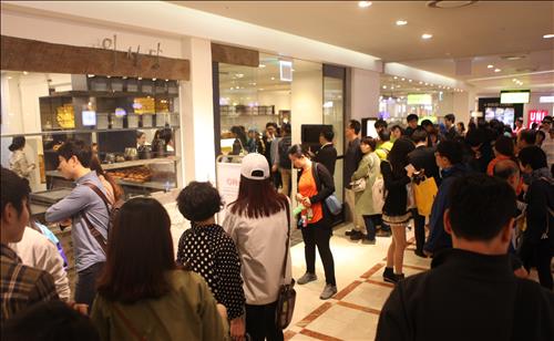| △ 롯데백화점 잠실점 '이성당' 매장에 고객이 줄을 길게 늘어선 모습. |