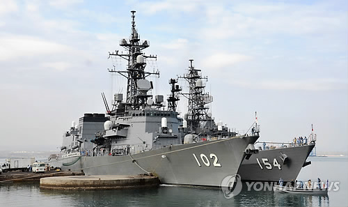 | △ 2015년 1월 19일(현지시간) 아프리카 지부티의 지부티 항에 자위대 호위함 '하루사메'(왼쪽)와 '아마기리'가 정박한 모습. (교도=연합뉴스DB) |