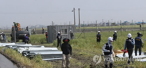 (군산=연합뉴스) 김동철 기자 = 2012년 주민들의 반대로 공사가 중단됐던 새만금 송전선로 건설사업이 3년여 만인 12일 재개됐다.