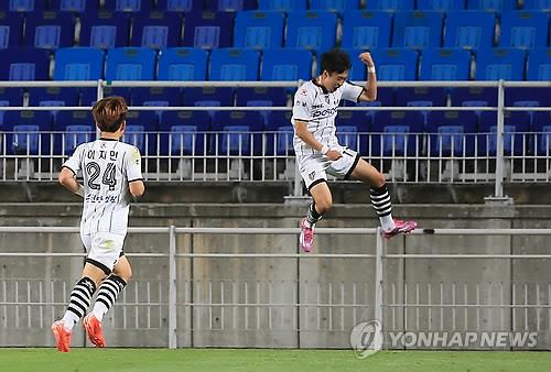 | △ 전남 안용우가 동점골을 넣은 뒤 기뻐하고 있다. |