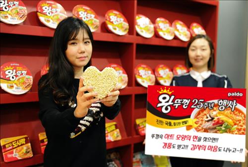 (서울=연합뉴스) 이유미 기자 = 팔도는 올해 출시 25주년을 맞은 '왕뚜껑' 고객의 성원에 감사하는 마음을 담아 '뚜껑 속 하트면을 찾아라' 이벤트를 연다고 14일 밝혔다.