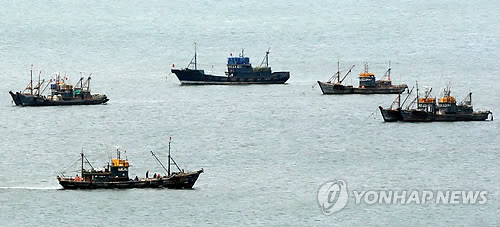| △ <자료사진> 지난 7일 연평도 해역에 등장한 중국어선들 << 옹진군청 제공 >> |