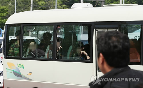 | △ 총기난사 훈련장 예비군 조기퇴소 (서울=연합뉴스) 임헌정 기자 = 총기사고가 난 서울 내곡동 예비군훈련장에 입소한 예비군 가운데 일부가 14일 부대 버스를 타고 조기퇴소하고 있다. 육군은 "52사단 210연대에서 동원훈련 중인 예비군 중 26명이 오늘 오전 10시 퇴소했다"며 "나머지 예비군은 점심 이후 수사 진행 상황을 고려해 퇴소 시간을 결정할 것"이라고 말했다. 이들은 희망에 따라 버스를 이용해 훈련장을 나선 뒤 인근 지하철역에 내렸다. 2015.5.14 kane@yna.co.kr |