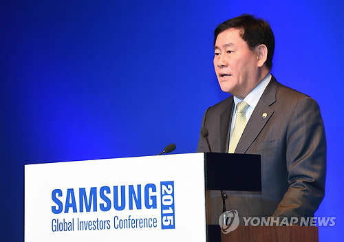 | △ 축사하는 최경환 부총리 (서울=연합뉴스) 최경환 부총리 겸 기획재정부 장관이 14일 서울 중구 신라호텔에서 삼성증권이 개최한 '2015 글로벌 투자자 콘퍼런스'에 참석, 축사하고 있다. 2015.5.14 << 기획재정부 제공 >> photo@yna.co.kr |