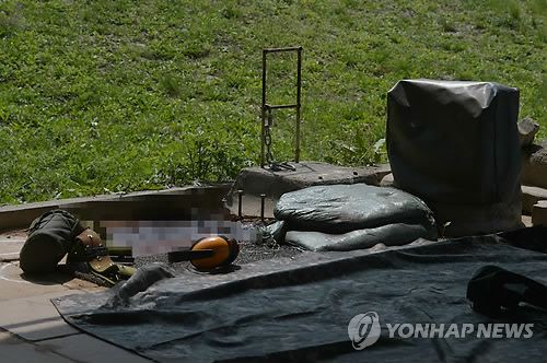 | △ 총기 난사 가해자의 사격 현장 (서울=연합뉴스) 임헌정 기자 = 예비군 총기 난사 사건 발생 다음 날인 14일 오후 서울 내곡동 예비군훈련장 내 사고현장인 예비군사격장을 군 관계자가 공개하고 있다. 최모씨의 난사 사고 당시에는 총기를 옆이나 뒤로 향할 수 없도록 고정하는 장치가 제대로 사용되지 않았던 것으로 알려졌다. |