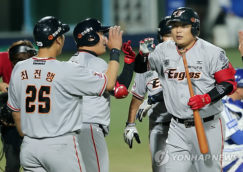 (서울·인천=연합뉴스) 천병혁 신창용 김지헌 기자 = 한화 이글스가 주장 김태균의 '대타 만루홈런'에 힘입어 삼성 라이온즈를 물리치고 위닝시리즈를 가져갔다.