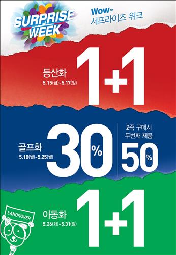 18∼25일 골프화를 30% 할인한 가격에 팔고, 26∼31일 랜드로바 아동화 구매 고객에게 아동화 1켤레를 더 준다.