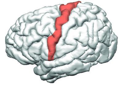 | △ 대뇌의 표면을 덮고 있는 대뇌피질은 수많은 신경세포의 집합이다. 인체의 고차원적인 기능이 실질적으로 이뤄지는 중요한 곳이다. 대뇌피질은 호두처럼 주름진 모양이다. 밖으로 돌출된 부위를 ‘이랑(gyrus)’, 이랑 사이 안으로 파여 잘 보이지 않는 부위를 ‘고랑(sulcus)’으로 부른다. 빨간색 부분은 전두엽과 두정엽 경계에 있는 ‘중심앞이랑(precentral gyrus)’이다. 신체의 움직임을 결정하는 운동중추다. 이곳에 문제가 생기면 팔, 다리, 안면에 마비가 오는 등 운동장애가 발생한다. |