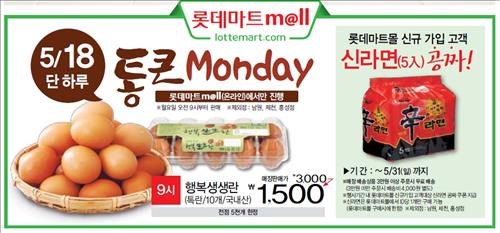 <쇼핑정보> 롯데마트몰 18일 계란 50% 할인