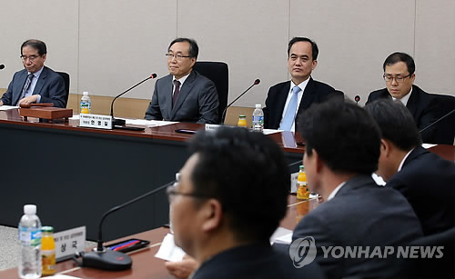 | △ 해수부, 세월호 배·보상 심의위원회 개최 (서울=연합뉴스) 전수영 기자 = 해양수산부가 15일 오후 정부서울청사에서 세월호 배상금 지급 의결을 위한 첫 번째 배·보상 심의위원회를 개최, 안영길 위원장(왼쪽 두번째)이 인사말을 하고 있다. 이날 안건으로는 희생자 3명에 대한 인적손해 배상금과 차량 14건·화물 4건에 대한 물적손해 배상금 신청이 상정된다. 2015.5.15 swimer@yna.co.kr |