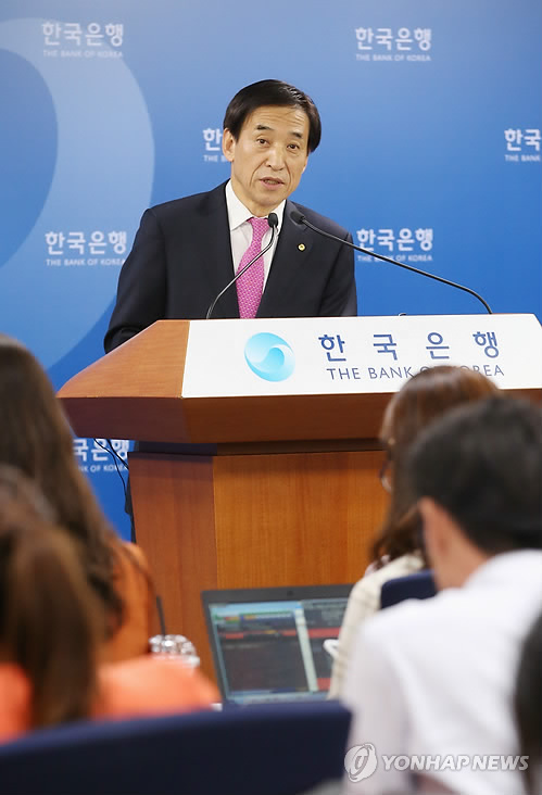 | △ 답변하는 이주열 한은 총재 (서울=연합뉴스) 김주성 기자 = 이주열 한국은행 총재가 15일 오전 서울 중구 한국은행 기자실에서 기준금리를 동결하기로 한 금융통화위원회 심의 결과와 관련한 기자의 질문을 받고 있다. 2015.5.15 utzza@yna.co.kr |