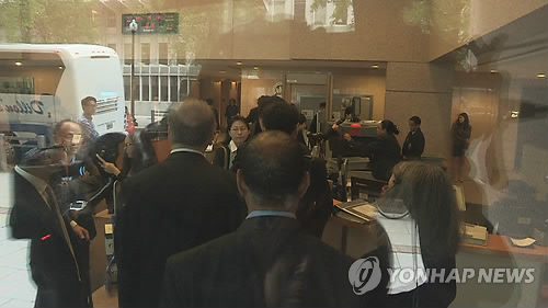 | △ 세계은행 본부 '팽팽한 긴장'…론스타 vs 한국정부 기싸움 고조 (워싱턴=연합뉴스) 노효동 특파원 = 15일 오전 8시께 론스타와 한국정부 사이에 무려 5조원대의 소송전이 열린 미국 워싱턴DC 세계은행 본부 산하 국제투자분쟁해결센터(ICSID). 양측 소송당사자와 대리인들이 건물 1층 보안검색대를 통과하고 있다. 2015.5.15 rhd@yna.co.kr |