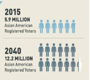 실제로 2040년에 전체 미국인 가운데 10%는 아시아계가 차지하며, 아시아계 유권자 수도 현재 4%에서 7%로 늘어나게 된다는 것이다.
