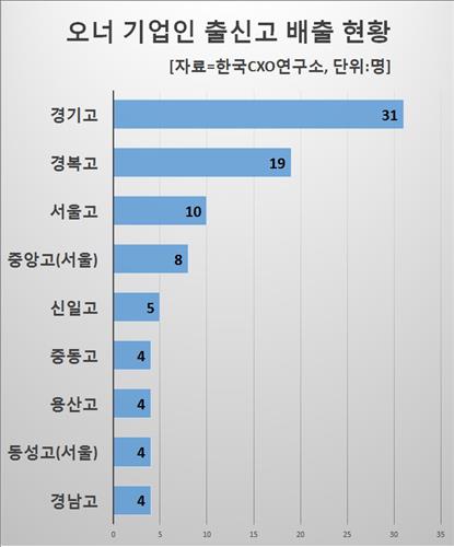 서울 중앙고와 신일고 출신 오너 기업가도 각각 8명과 5명이었다. 서울 동성고·용산고·중동고는 4명씩을 배출했다.