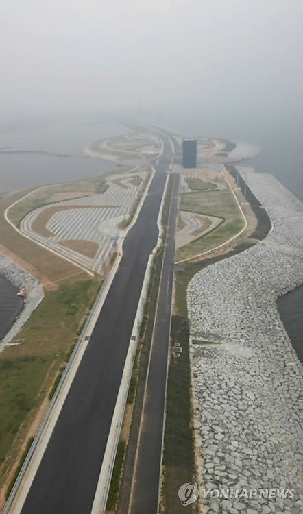 | △ 시원하게 뚫린 새만금 농업용지 방수제 (전주=연합뉴스) 임청 기자 = 최근 완공된 새만금 내부 농업용지 일대의 방수제. 2015. 5. 18 lc21@yna.co.kr |