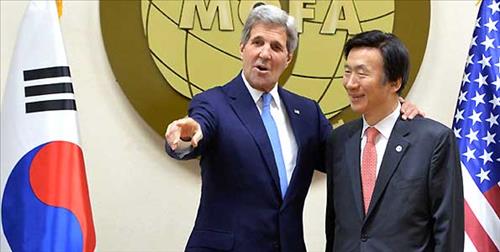 존 케리 미국 국무장관은 18일 북한에 대해 "북이 가하는 한반도 평화와 안보에 대한 어떤 위협에도 완전히 결단력 있게 대처할 것"이라고 밝혔다. 케리 장관은 윤병세 외교부장관과 한미 외교장관 회담 직후 서울 외교부 청사에서 가진 공동기자회견에서 "우리에게 가장 큰 안보 우려 사항은 북한"이라면서 이같이 말했다. 케리 장관은 "북한의 미사일 시스템이라든지 지속적인 핵무기 추구는 상당히 위험한 발상"이라면서 "북한의 SLBM(잠수한 발사 탄도미사일)은매우 도발적인 것이고, 유엔이나 국제기준에 어긋나는 것"이라면서 "또 하나의 도발일 뿐"이라고 강조했다. 존 케리 미국 국무장관은 한일 관계와 관련해서는 "한일 양국이 민감한 역사 문제에 대해 자제심을 갖고 대처하고 계속 대화하며 서로 수용할 수 있는 해결책을 찾길 바란다"고 말했다.