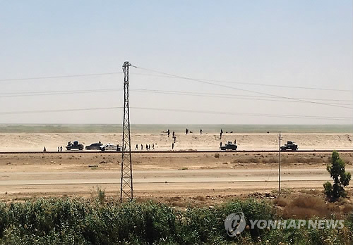 | △ 이라크 라마디, IS 수중에 함락 (바그다드 AP=연합뉴스) 수니파 무장조직 이슬람국가(IS)가 17일(현지시간) 이라크 서부 안바르주(州) 주도 라마디를 격전 끝에 점령했다고 주장했다. 이라크 관리들도 IS가 라마디의 정부군 작전통제소를 장악했다고 확인했다. 라마디가 IS 수중에 떨어진 것은 이라크 정부군이 지난해 IS를 상대로 영토탈환 작전을 시작한 이래 최악의 패배다. 사진은 라마디에 주둔하던 이라크 정부군이 이날 철수하고 있는 모습. marshal@yna.co.kr |