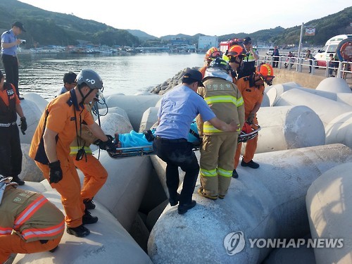 | △ 삼척 임원항 방파제서 추락한 30대 구조 (삼척=연합뉴스) 21일 오후 5시 15분께 강원 삼척시 원덕읍 임원항 방파제에서 이모(36)씨가 5m 아래로 추락한 것을 신고를 받고 출동한 동해해경과 119구조대가 구조했다. 이씨는 전날 던져 놓은 통발을 찾고자 방파제를 찾았다가 테트라포드, 일명 삼발이에서 미끄러져 사고를 당했다. 이씨는 머리에서 피를 흘리고 경추와 오른쪽 다리에 통증을 호소했으나 생명에는 지장이 없는 상태다. 2015.5.21 <<동해해양경비안전서>> yoo21@yna.co.kr http://blog.yonhapnews.co.kr/yoo21/ |