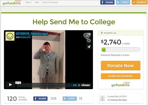 21일(현지시간) 지역 신문인 애틀랜타 저널 컨스티튜션에 따르면, 미국 조지아 주 애틀랜타의 카버 보건 연구 고교를 수석으로 졸업한 말론 포르티요 군은 크라우드 펀딩 사이트인 '고펀드미닷컴'에 사흘 전 자신의 사연을 올리고 누리꾼들의 도움을 기다리고 있다.
