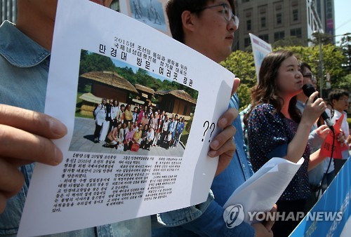 보수단체 회원들은 WCD 대표단 일부가 북한 방문 중 김일성 전 주석을 찬양했다는 북한 매체 보도 내용을 근거로 이들이 남쪽으로 넘어오는 시점에 맞춰 항의집회를 열기로 했다.