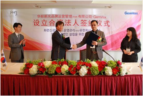 (서울=연합뉴스) 차대운 전명훈 기자 = 젬백스[082270]는 중국의 화련신광브랜드운영관리(천진) 유한공사(이하 화련신광)와 합작법인인 화련젬백스를 설립하는 내용의 투자 계약을 체결했다고 22일 밝혔다.