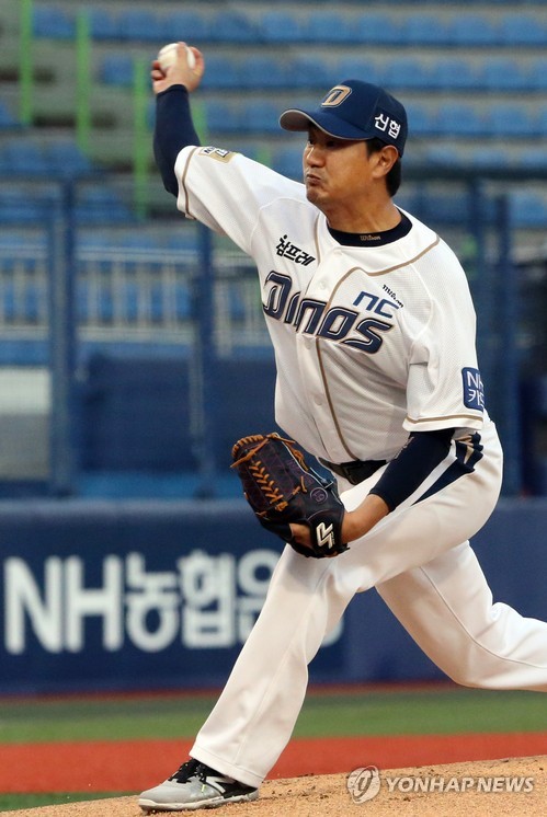 (서울=연합뉴스) 최인영 기자 = 마흔의 베테랑 투수 손민한(NC 다이노스)이 무실점 호투와 승리의 공을 '팀'에 돌렸다.