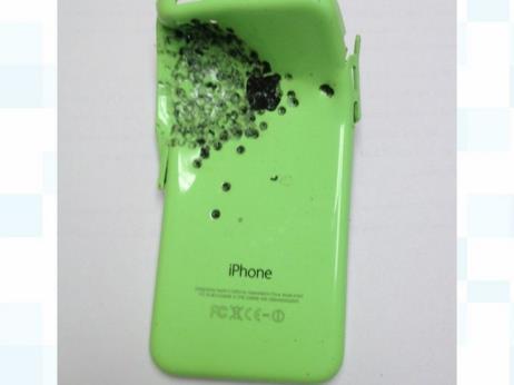 현지 경찰에 증거로 제출된 사건 당시의 아이폰5C(자료사진 참조)를 보면 총격 사건이 일어난 당시 상황을 잘 보여준다. 그린 색상의 아이폰5C 뒷면에는 10발이 훨씬 넘는 총알이 지나간 흔적이 남아있다.
