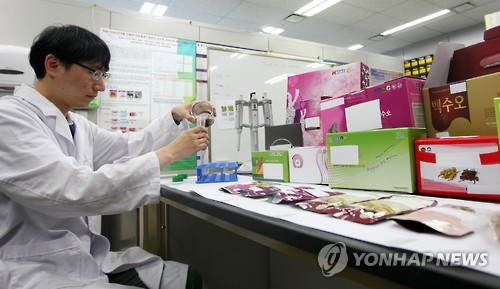 | △ 백수오 제품 유전자 검출 실험 (청주=연합뉴스) 김형우 기자 = 26일 오후 청주시 오송읍 식품의약품안전처에서 시중에 유통되는 백수오 제품 207개를 대상으로 이엽우피소 함유여부를 조사하기 위한 유전자 검출 실험을 진행하고 있다. 식약처 조사결과 시중에 유통되는 백수오 제품 가운데 이엽우피소가 검출되지 않은 '진짜' 백수오 제품은 5%에 불과한 것으로 나타났다. |