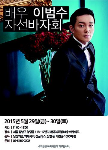 이범수의 소속사 테스피스엔터테인먼트는 이범수가 오는 29~30일 강남구 청담동 네이처포엠 지하 1층 아케이드에서 자선바자회를 개최한다고 27일 밝혔다.