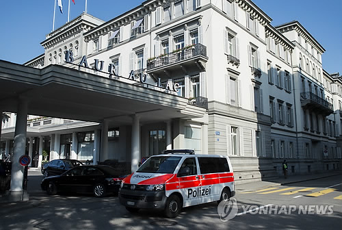 | △ 스위스 경찰 피파(FIFA) 급습 (취리히 AP=연합뉴스) 27일 스위스 경찰 차량 1대가 스위스 취리히 5성급 호텔 '바우어 오락' 외부에 주차돼 있다. 이 호텔에는 피파(FIFA) 고위 간부들이 연례 회의차 묵고 있다. 스위스 법무부는 미국 당국의 요청에 따라 피파 간부 6명을 체포 구금하고 있다고 밝혔다. 미국 당국은 이들이 수백만 달러의 뇌물을 받은 것으로 보고 있다. |