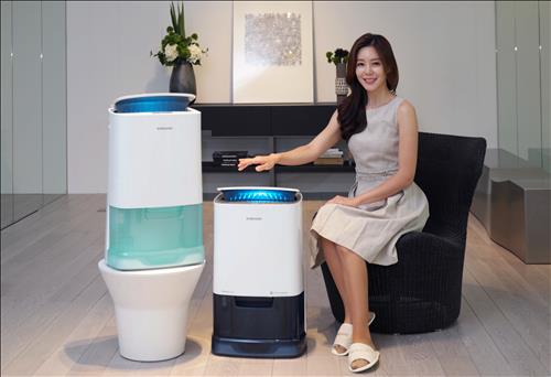 (서울=연합뉴스) 옥철 기자 = 삼성전자[005930]가 28일 소비전력을 줄이고 새로운 디자인을 채택한 2015년형 인버터제습기를 선보였다.