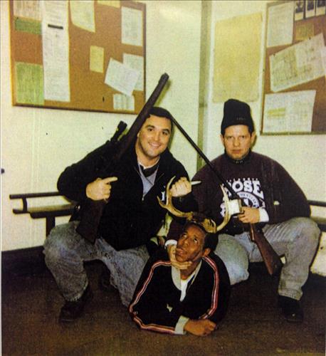두 백인 경관은 실제 사슴 사냥에 성공한 듯 득의양양한 표정이다.