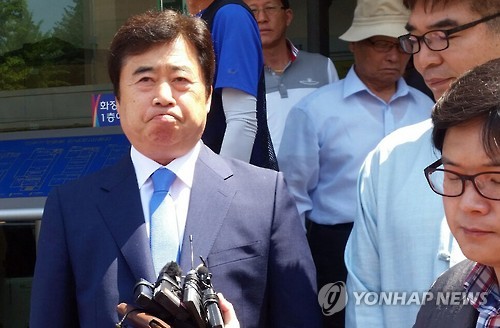 | △ 박경철 익산시장 항소심도 직위상실형…벌금 500만원 (전주=연합뉴스) 최영수 기자 = 박경철(59) 전북 익산시장이 29일 항소심에서도 직위상실 형량에 해당하는 벌금 500만원을 선고받은 후 침통한 표정을 짓고 있다. |
