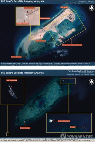 (서울=연합뉴스) 권수현 기자 = 미국 국방부가 29일(현지시간) 중국이 남중국해 분쟁지역에 건설중인 인공섬으로 무기를 반입한 사실을 공식 확인했다고 일본 교도통신이 보도했다.