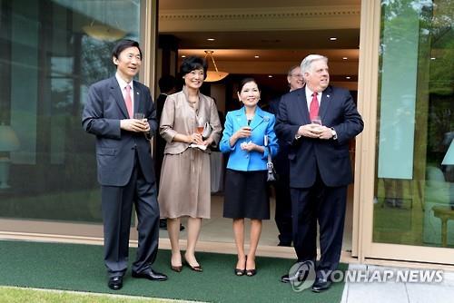 (서울=연합뉴스) 김호준 기자 = 윤병세 외교부 장관은 30일 낮 서울 시내 한남동 외교부 장관 공관에서 방한 중인 래리 호건 미국 메릴랜드 주지사 내외와 주정부 대표단을 초청, 오찬을 함께 했다.