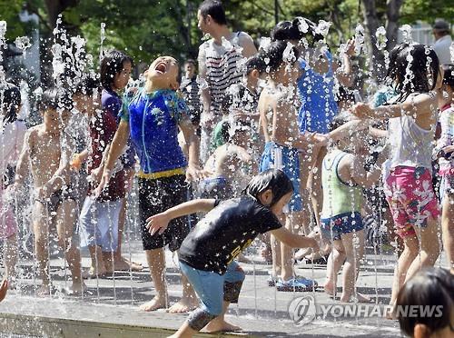 | △ 31일 도쿄도 나카노(中野)구에서 아이들이 분수 물을 맞으며 더위를 식히고 있다. (교도.연합뉴스) |